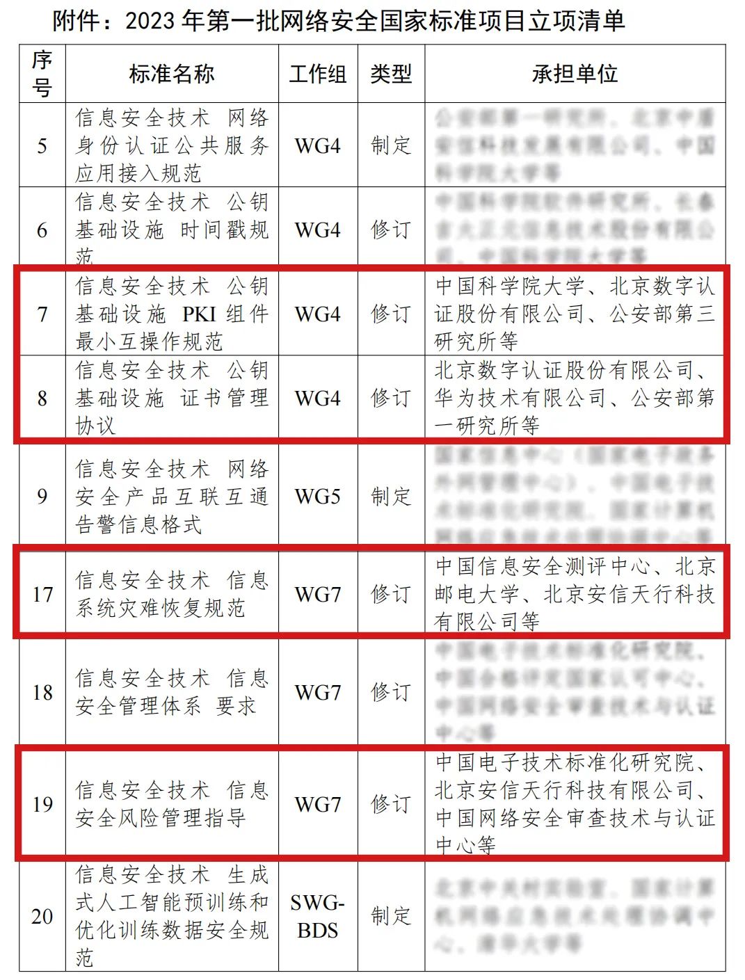 2023年第一批网络安全国家标准项目立项清单发布,数字认证牵头1项参与3项